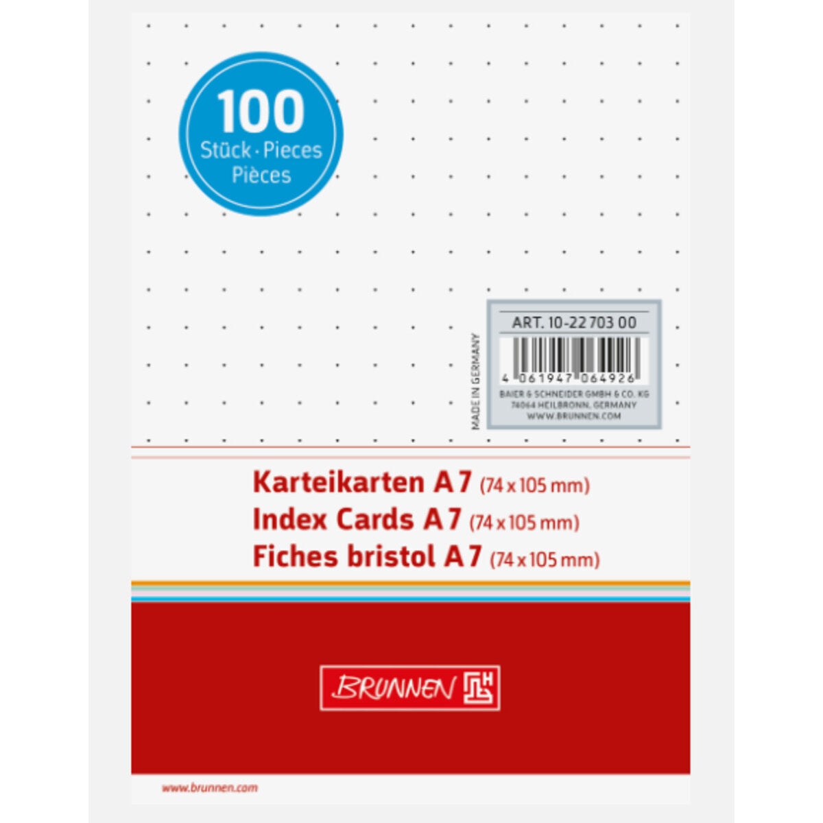 BRUNNEN Karteikarte A7 dotted, weiß, 100 Stück