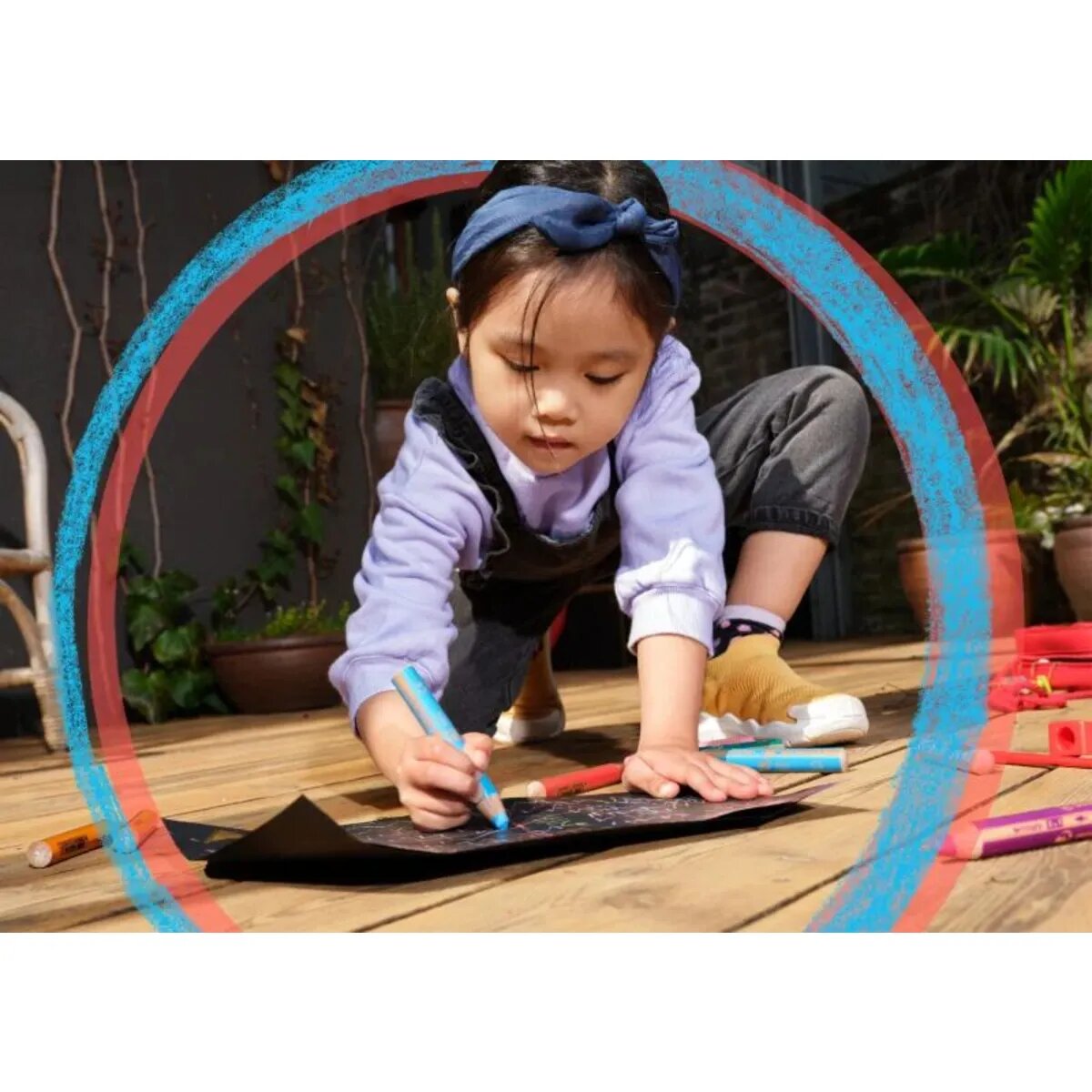 Der STABILO woody 3 in 1 ist ein außergewöhnliches Multitalent: Er ist Buntstift, Wassermalfarbe und Wachsmalkreide in einem.Mit seiner hohen Deckkraft und Farbintensität eignet er sich super für dunkles und schwarzes Papier sowie für Kratzbilder. Er lässt sich spielend leicht mit einem Pinsel aquarellieren und zaubert dabei tolle Kunstwerke aufs Papier. Auch auf glatten Oberflächen wie Glas und Metall funktioniert er hervorragend und lässt sich von Glas mit Wasser auch ganz einfach wieder entfernen. Hergestellt wird der Stift mit der robusten XXL-Mine aus 100% PEFC-zertifiziertem Holz. Der STABILO woody 3 in 1 ist so ergiebig wie acht Standard-Buntstifte. Seine runde und dicke Form eignet sich besonders für kleine Kinderhände.