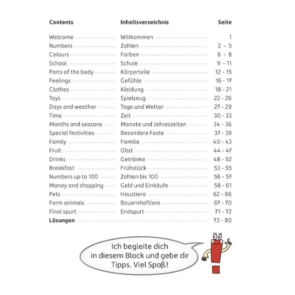 Spielerisch und abwechslungsreich lernen die Schüler mit diesem Block viele englische Wörter, kurze Sätze und einfache Phrasen kennen. Die Themen orientieren sich an den Lehrplänen des Englischunterrichts, sodass Lernbereiche passend wiederholt und vertieft werden können. Durch vielseitige und kindgerechte Übungen prägt sich der Wortschatz der Fremdsprache gut ein. Auf den letzten Seiten gibt es die Lösungen zu allen Aufgaben. - Helena Heiß | Mascha Greune (Illustriert) - Seitenanzahl: 80 - ISBN: 978-3-88100-673-6