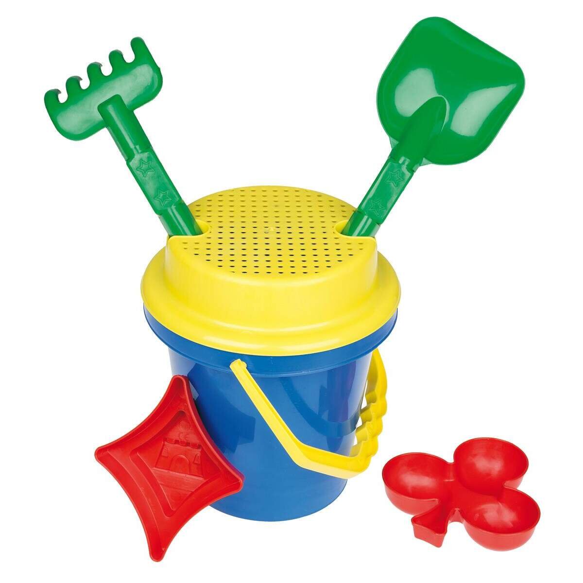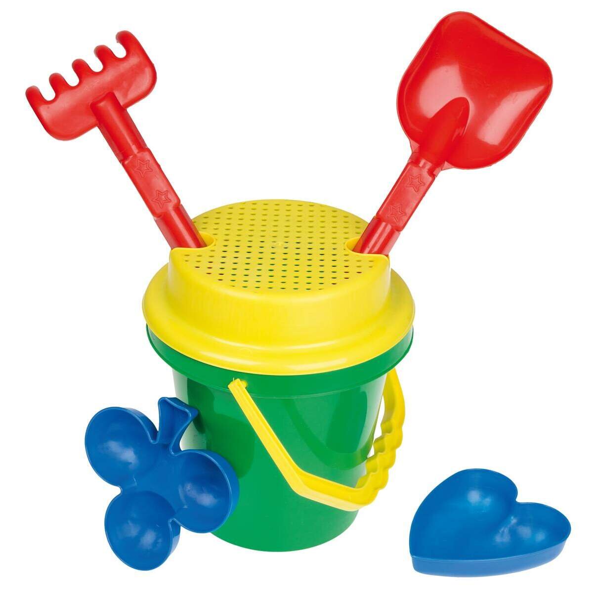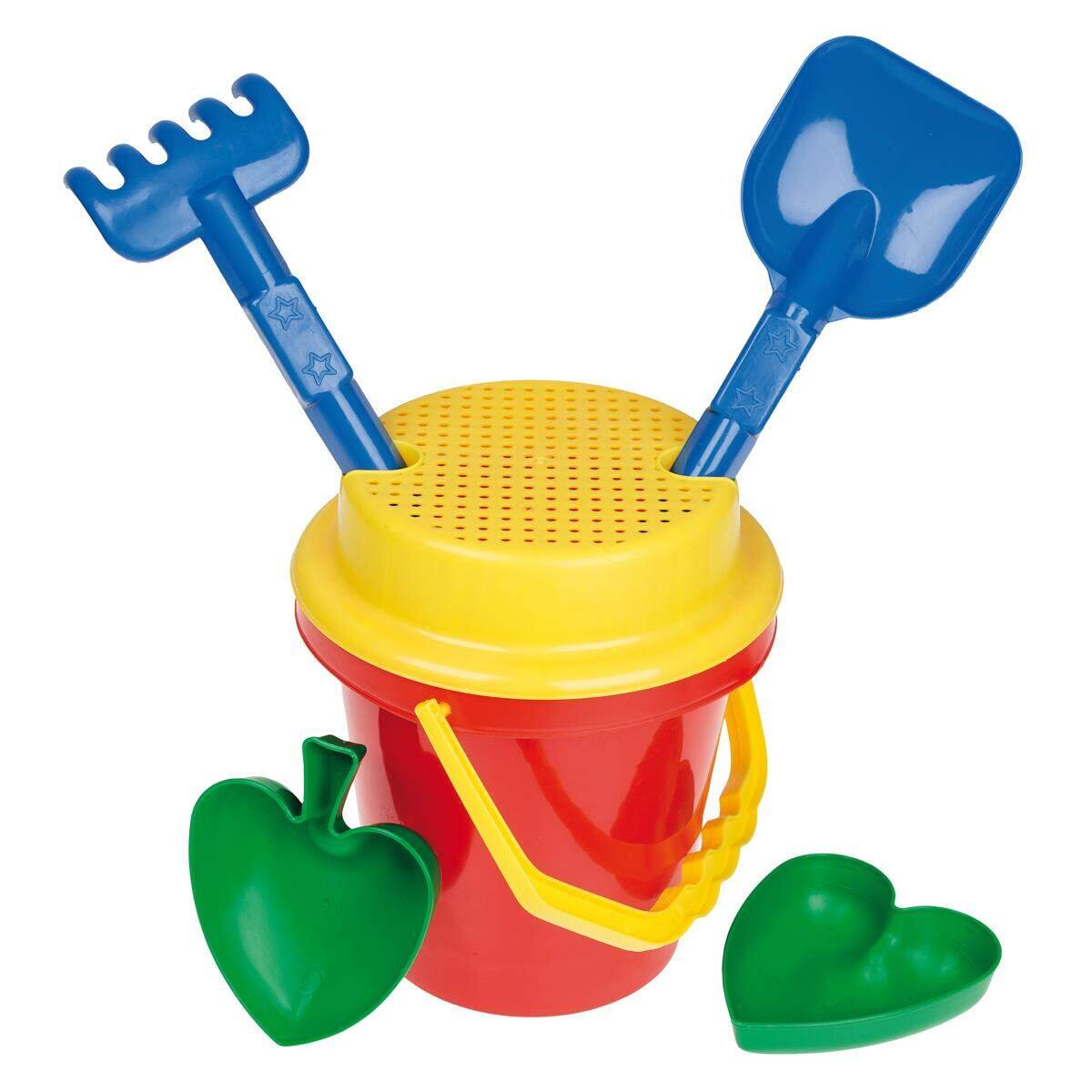 Die Idena Eimergarnitur ist die perfekte Wahl für alle kleinen Gärtner und Strandliebhaber. Mit der 6-teiligen Garnitur, bestehend aus einem Eimer mit Tragegriff, Sieb, Schaufel, Harke und 2 Förmchen, sind alle wichtigen Werkzeuge für das Spielen im Sand oder das Gärtnern im Garten vorhanden. Die farbig sortierten Förmchen sorgen für noch mehr Spaß und Abwechslung beim Spielen. Hergestellt aus robustem Kunststoff ist die Garnitur langlebig und leicht zu reinigen. Holen Sie sich jetzt die Idena Eimergarnitur und lassen Sie deine Kinder die Natur entdecken!