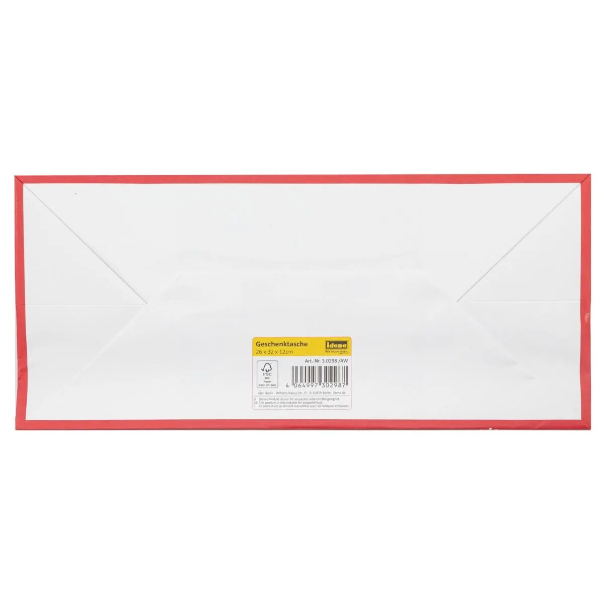 Die Idena Geschenktasche Dear Red ist die perfekte Wahl, um deine Geschenke stilvoll zu verpacken. Die Trageschlaufen aus Textilkordel sorgen für einen bequemen Transport und die matte Oberfläche mit goldglänzender Veredelung verleiht der Tasche ein elegantes Aussehen. Hergestellt aus FSC-Mix Papier, ist diese Tasche nicht nur schön anzusehen, sondern auch umweltfreundlich. Mit einer Größe von 32 x 26 x 12 cm bietet sie genügend Platz für kleine und mittelgroße Geschenke. Der Name des Produktes "Dear Red" unterstreicht die liebevolle Gestaltung dieser Geschenktasche. Überzeuge dich selbst von der Qualität und dem Design dieser wunderschönen Idena Geschenktasche!